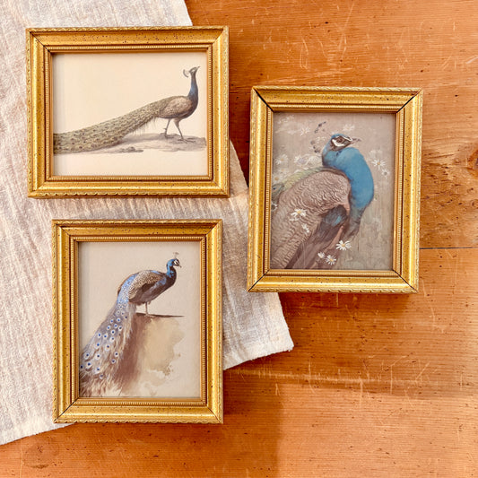 Cadre vintage avec impression sur papier beaux-arts - Le paon III