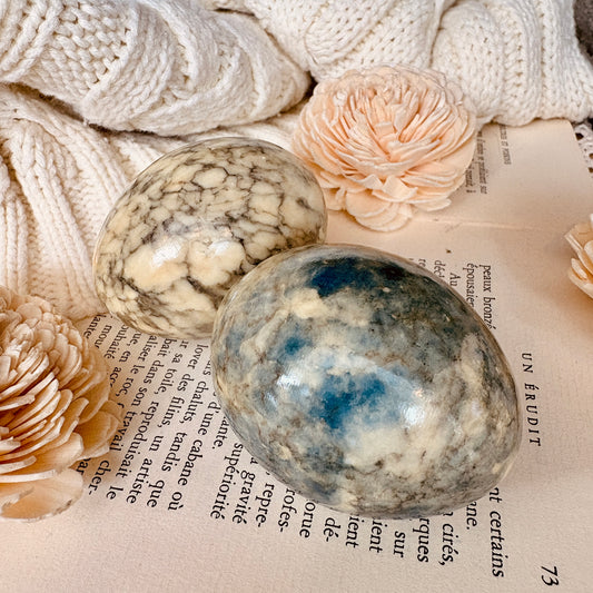 Duo d'oeufs en pierre - bleuté