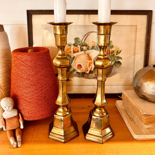 Selection of vintage candlesticks and candelabra to bring softness and light to your decor.