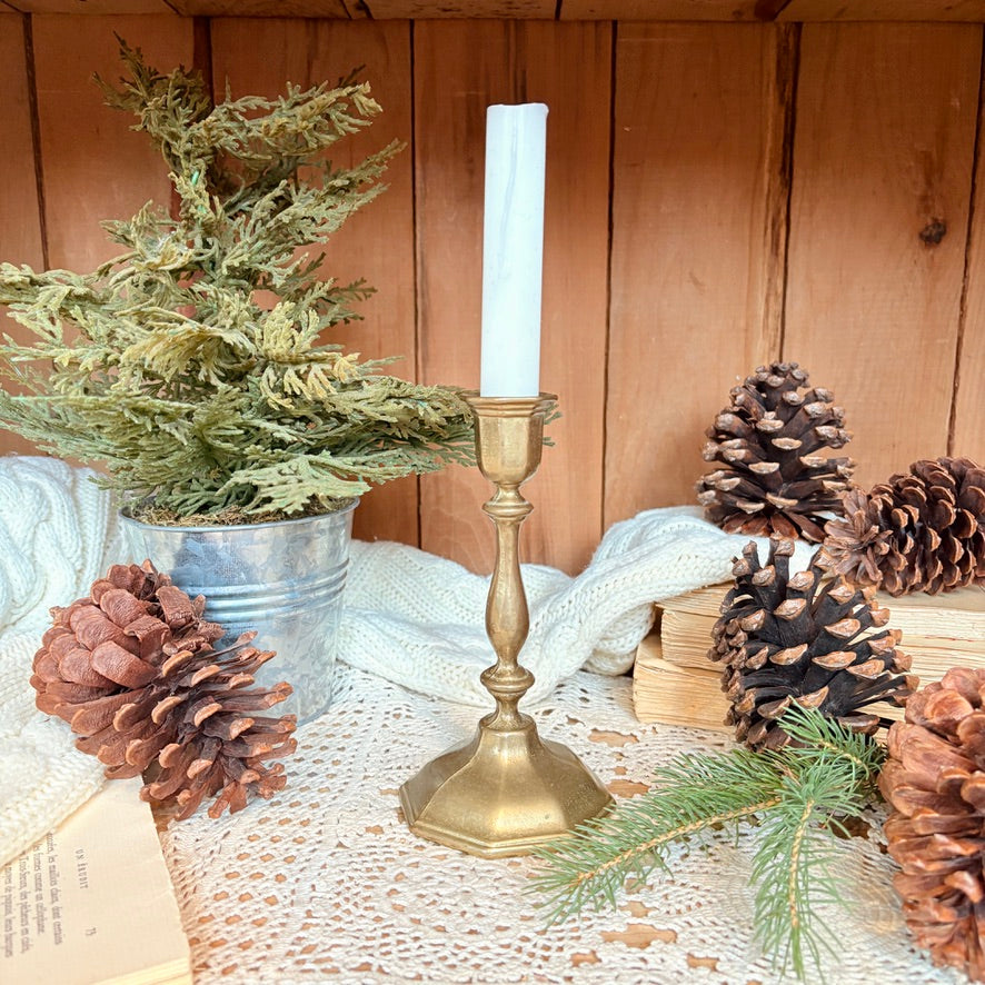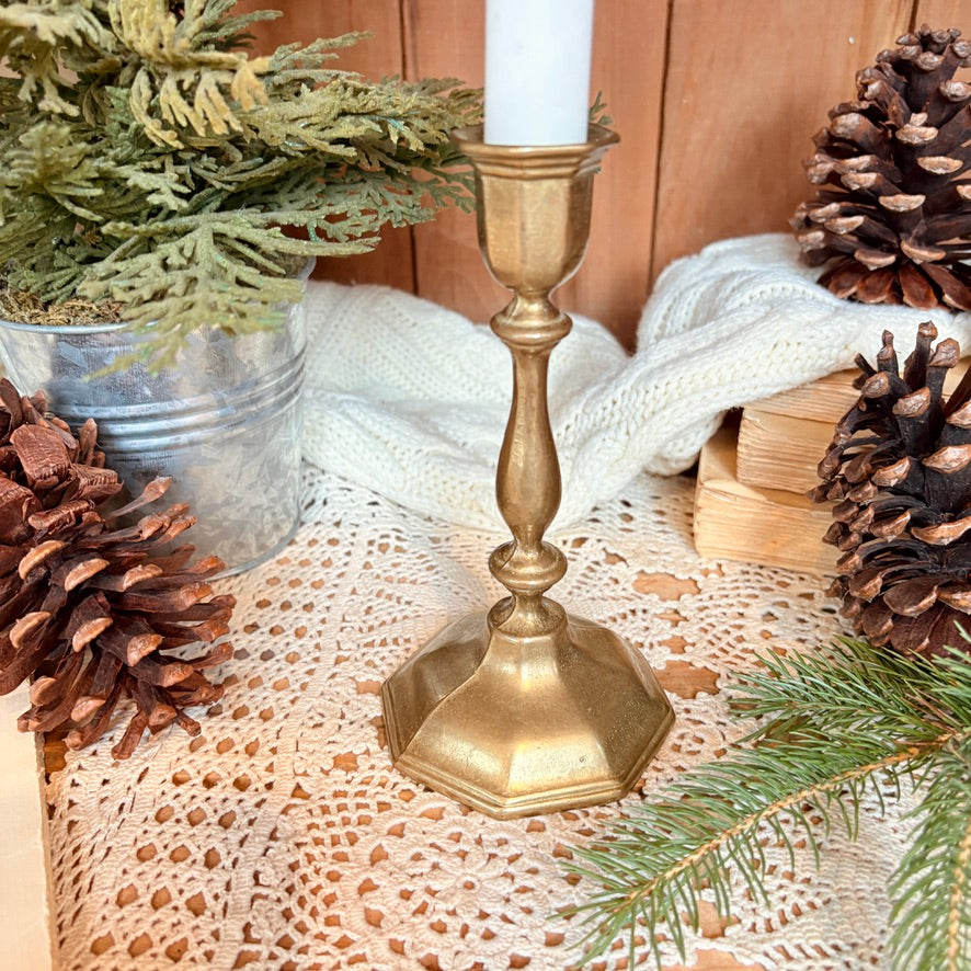 Illuminez vos espaces avec l'élégance intemporelle de ce bougeoir en laiton. Son fini doré chaleureux crée une ambiance raffinée et accueillante, idéal pour les moments festifs et les soirées intimes. Parfait pour le temps des fêtes, ce pièce de décoration ajoute une touche de sophistication à votre table ou votre foyer. Le laiton, matériau noble et durable, garantit une beauté qui perdure au fil des années.