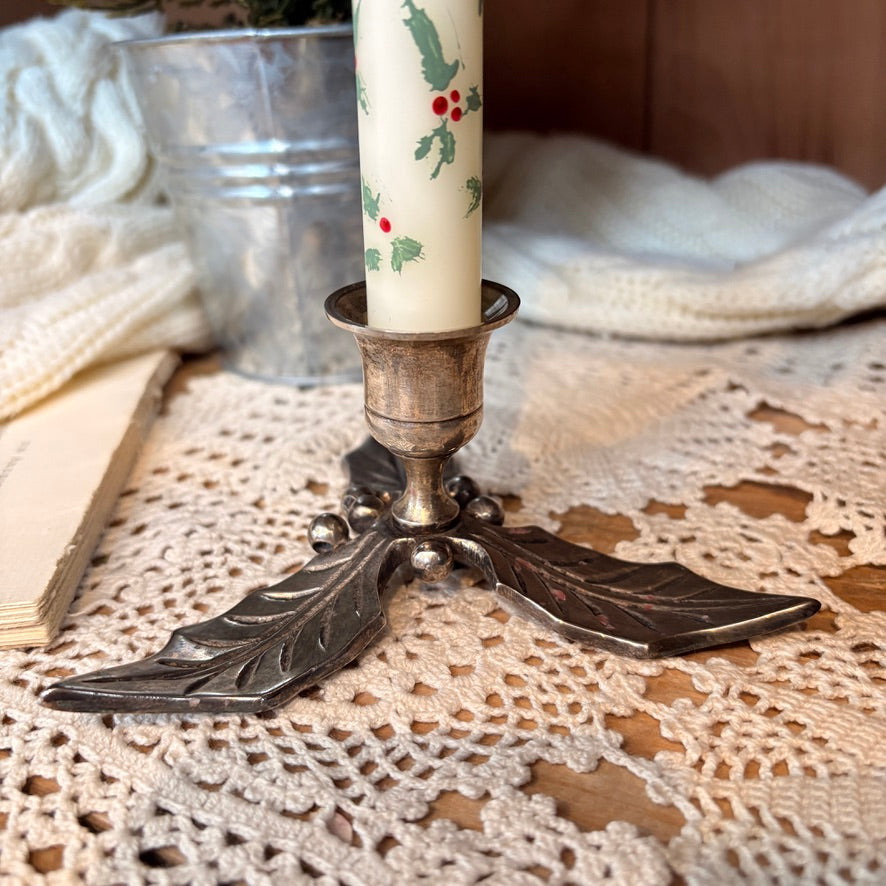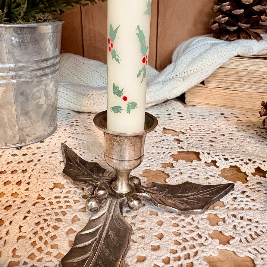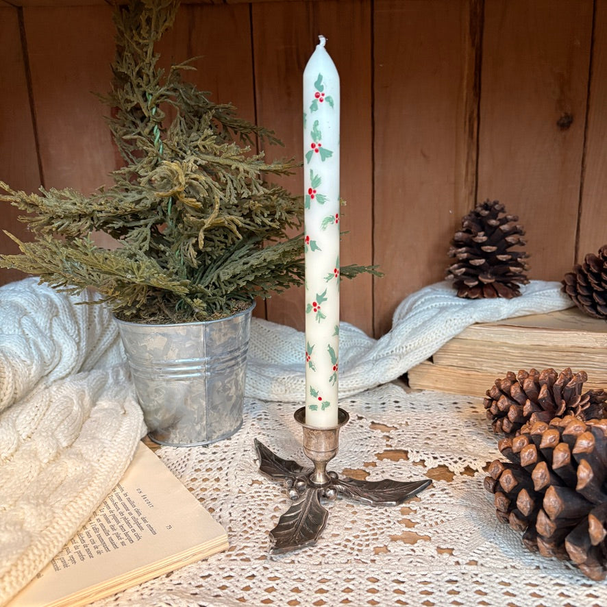 Cet élégant bougeoir argenté capture l'essence festive avec son design en forme de feuilles de gui. Parfait pour créer une ambiance chaleureuse et raffinée durant les célébrations de fin d'année, il ajoute une touche de sophistication à votre décor. Son finition argentée scintillante reflète la lumière des bougies, créant une atmosphère magique et intemporelle. Idéal pour les tables de fête, les cheminées ou les espaces d'accueil, ce bougeoir transforme chaque moment en occasion spéciale.