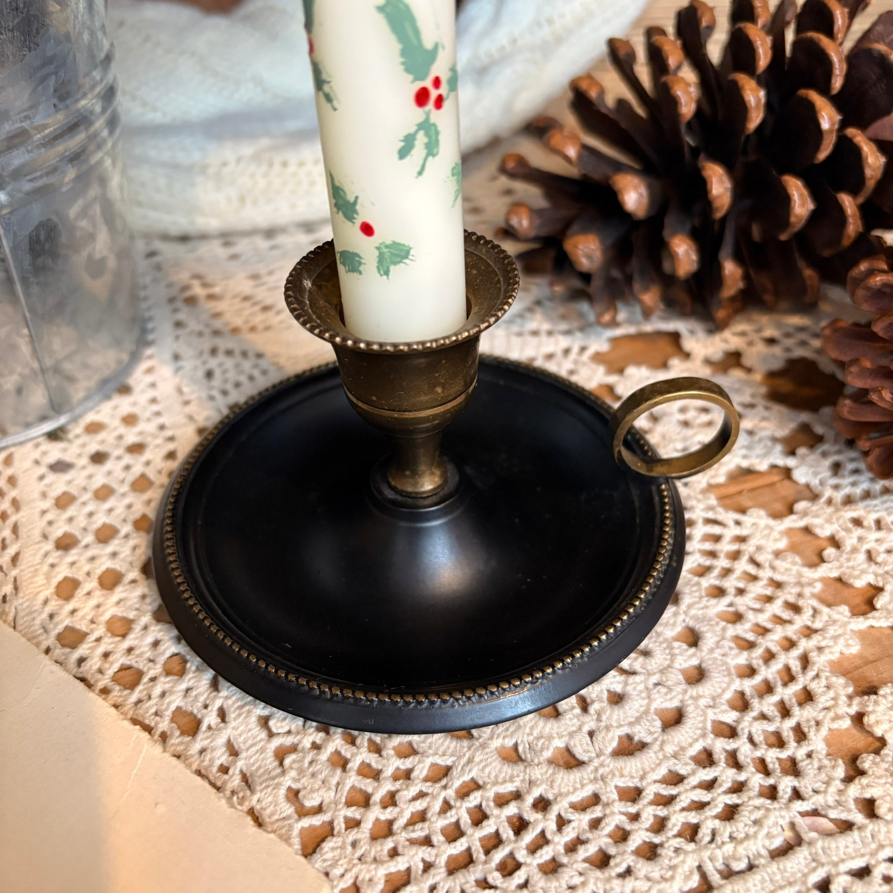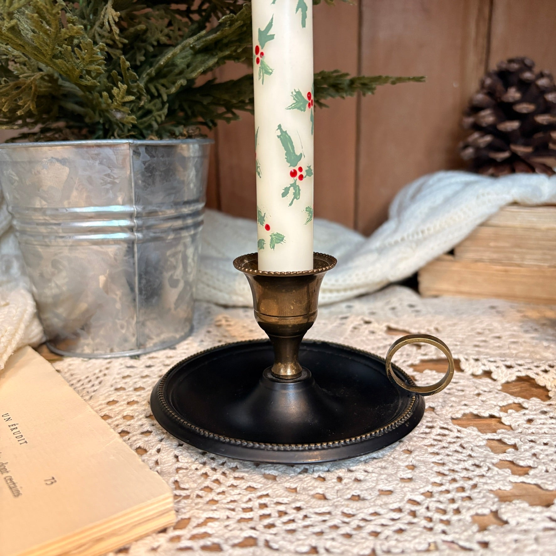 Bougeoir élégant en laiton noir et or, doté d'une anse pratique pour un transport facile. Son design épuré allie modernité et raffinement, parfait pour créer une ambiance chaleureuse dans n'importe quel espace. Dimensions compactes idéales pour les petites surfaces. Ajoute une touche de sophistication à votre décoration intérieure.
