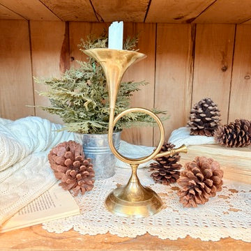 Cet élégant bougeoir en laiton arbore une silhouette distinctive en forme de trompette, apportant une touche de raffinement à votre décor festif. Son design intemporel et sa finition dorée en font un accessoire de choix pour créer une ambiance chaleureuse et sophistiquée durant les célébrations. Parfait pour mettre en valeur vos bougies préférées, il transforme tout espace en un cadre mémorable et lumineux.