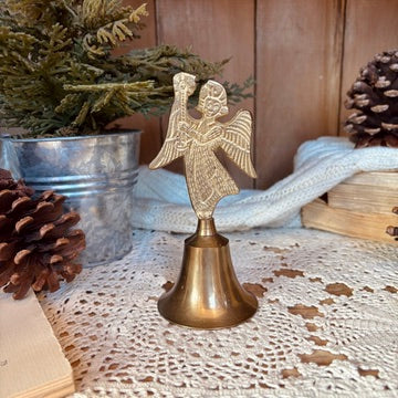 Clochette en laiton finement travaillé mettant en vedette un ange musicien jouant de la harpe. Cette pièce élégante ajoute une touche de sophistication à votre décor des fêtes, combinant artisanat délicat et symbolisme intemporel. Idéale pour créer une ambiance festive raffinée, elle capture l'essence de la saison avec grâce et distinction. Un accessoire de décoration qui transforme votre intérieur en espace enchanteur.