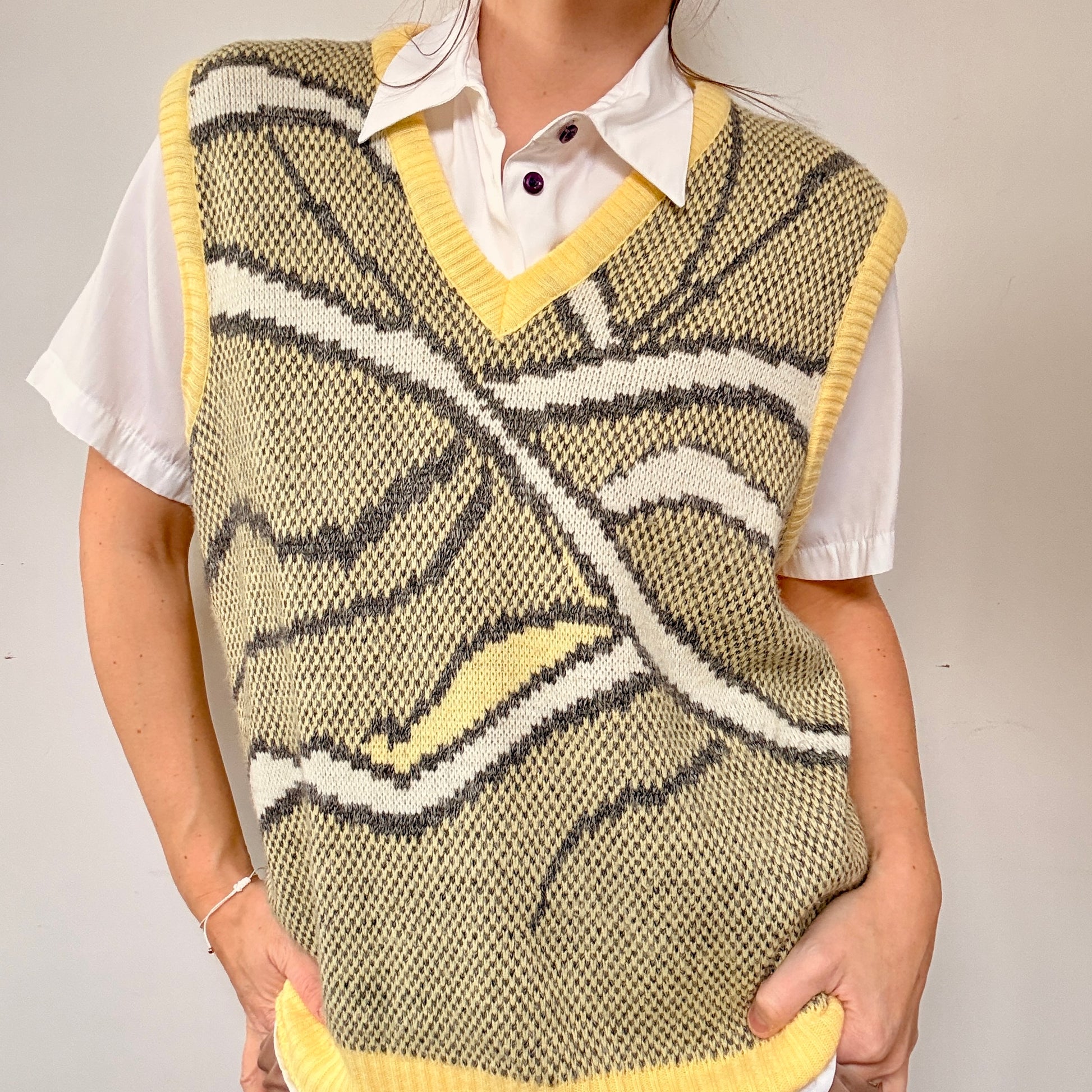 Débardeur épuré aux lignes géométriques affirmées, mariant le jaune vif et le gris dans une composition moderne et intemporelle. Cette pièce minimaliste joue sur les contrastes chromatiques pour créer une silhouette dynamique, idéale pour les garde-robes contemporaines. Coupe ajustée et détails soignés pour un rendu raffiné au quotidien.