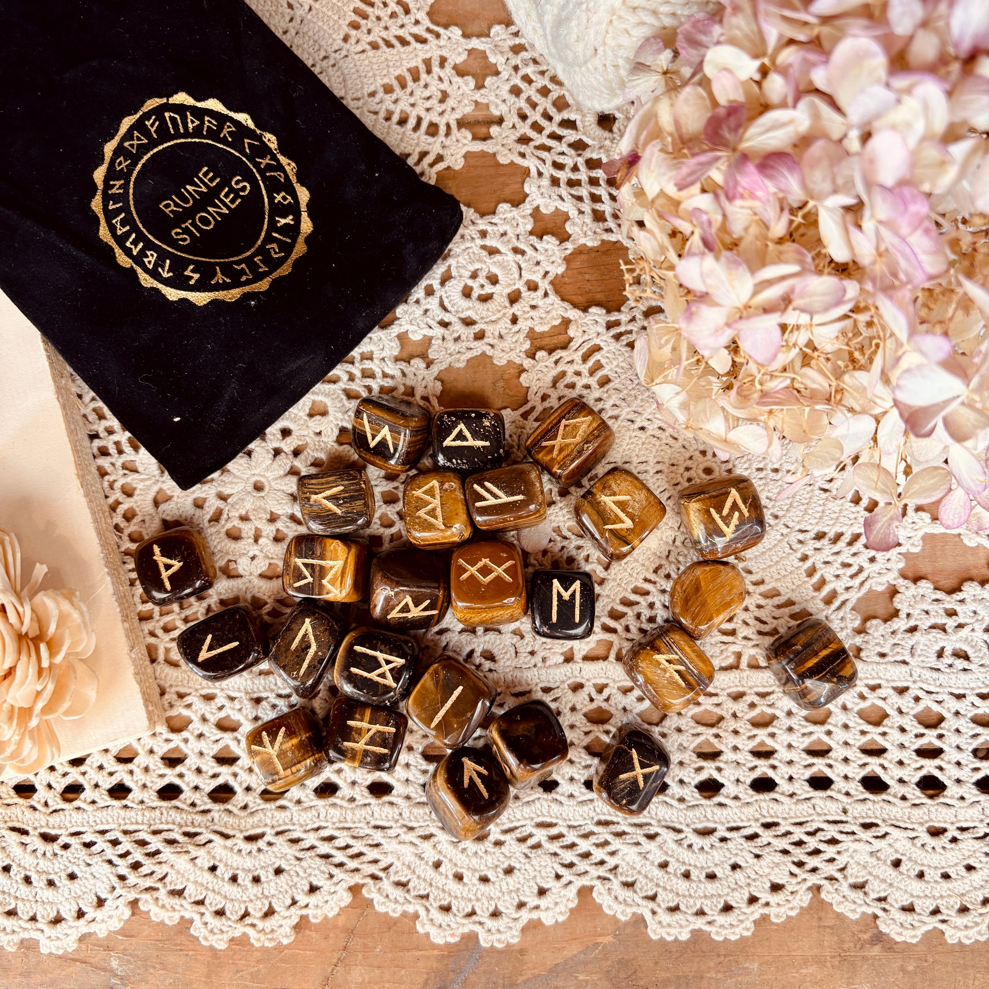 Découvrez cet ensemble complet de 25 runes divinatoires taillées dans de l'oeil de tigre, une pierre réputée pour ses propriétés apaisantes et spirituelles. Chaque rune est finement travaillée et accompagnée d'une pochette de rangement élégante en tissu pour un transport facile et une protection optimale. Le livret de significations détaillé inclus vous guide à travers l'interprétation de chaque symbole, idéal pour les débutants comme pour les praticiens expérimentés. Parfait pour la divination, la méditation ou comme cadeau spirituel unique.