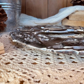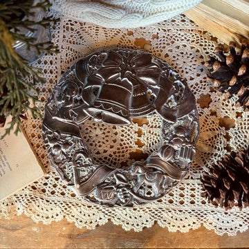 Transformez votre table de fête avec ce sous-plat vintage argenté aux motifs festifs intemporels. Ses détails délicats capturent la magie des célébrations passées, ajoutant une touche d'élégance rétro à votre décor. Polyvalent et charmant, il peut être utilisé comme dessous-de-plat traditionnel ou accroché au mur pour créer une pièce de décoration murale authentique. Parfait pour les amateurs de vintage qui cherchent à ajouter du caractère et de la nostalgie à leur intérieur, particulièrement pendant la saison des fêtes.