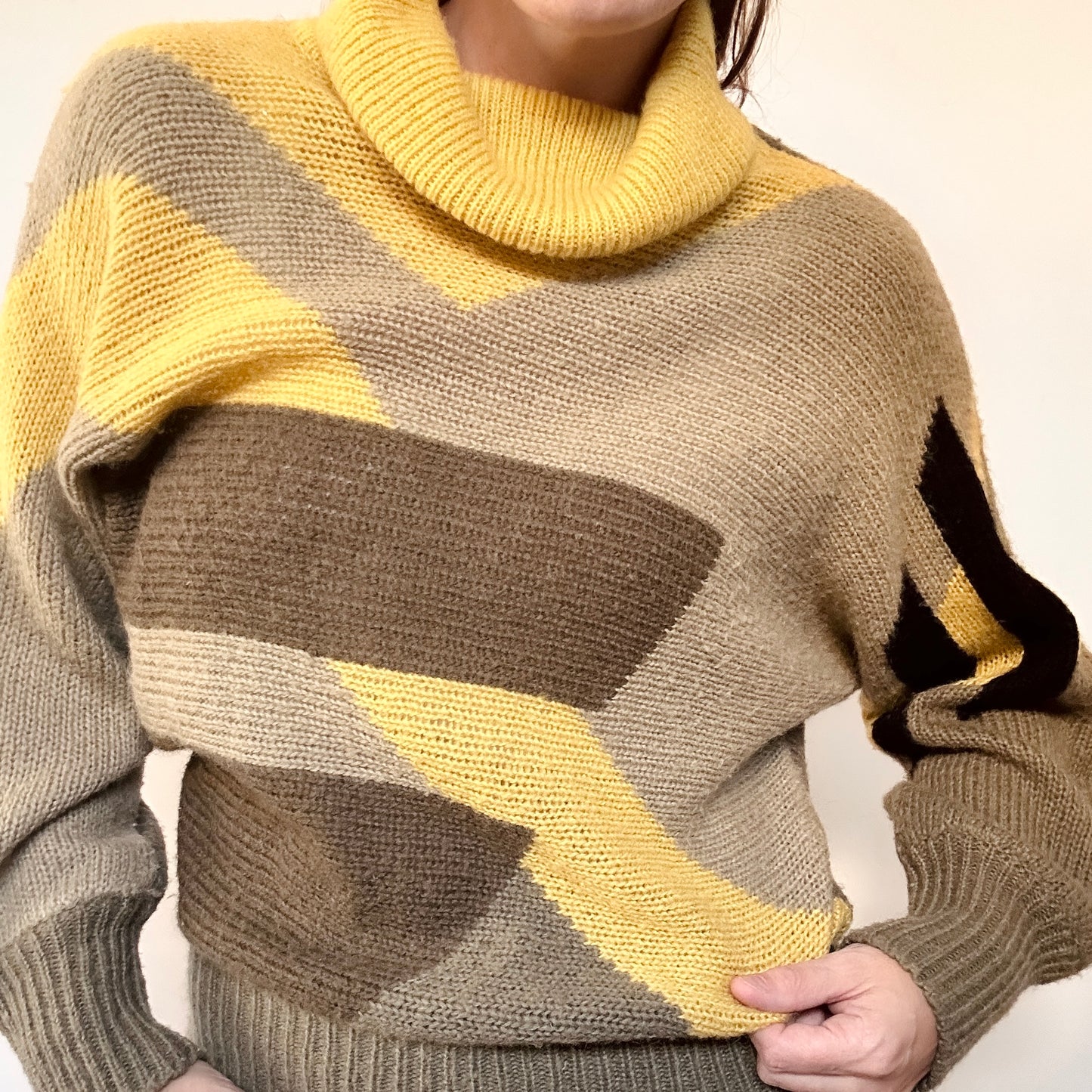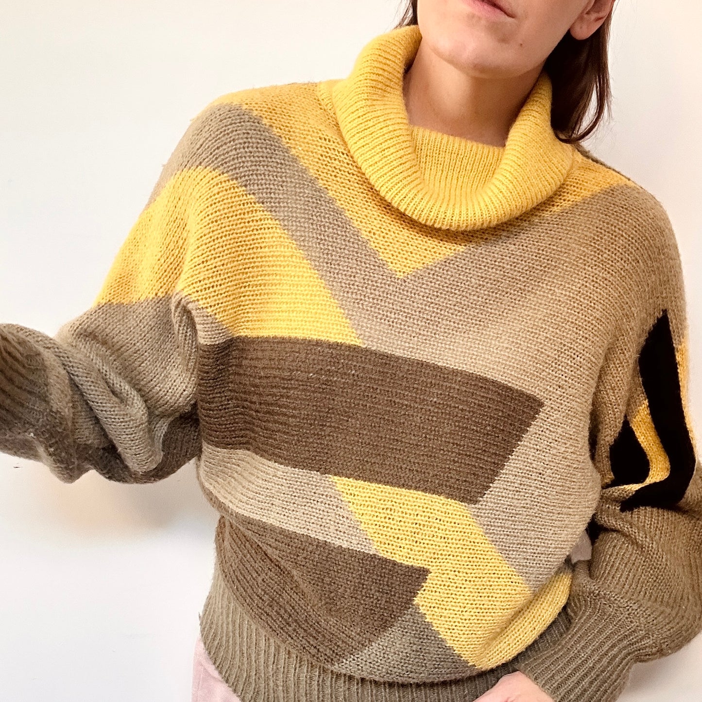 Discover this magnificent knit from the German brand Mondi with its turtleneck perfect for fall. Geometric shapes in autumnal colors bring a touch of elegance to your outfit. Stay warm while looking stylish with Mondi knitwear.