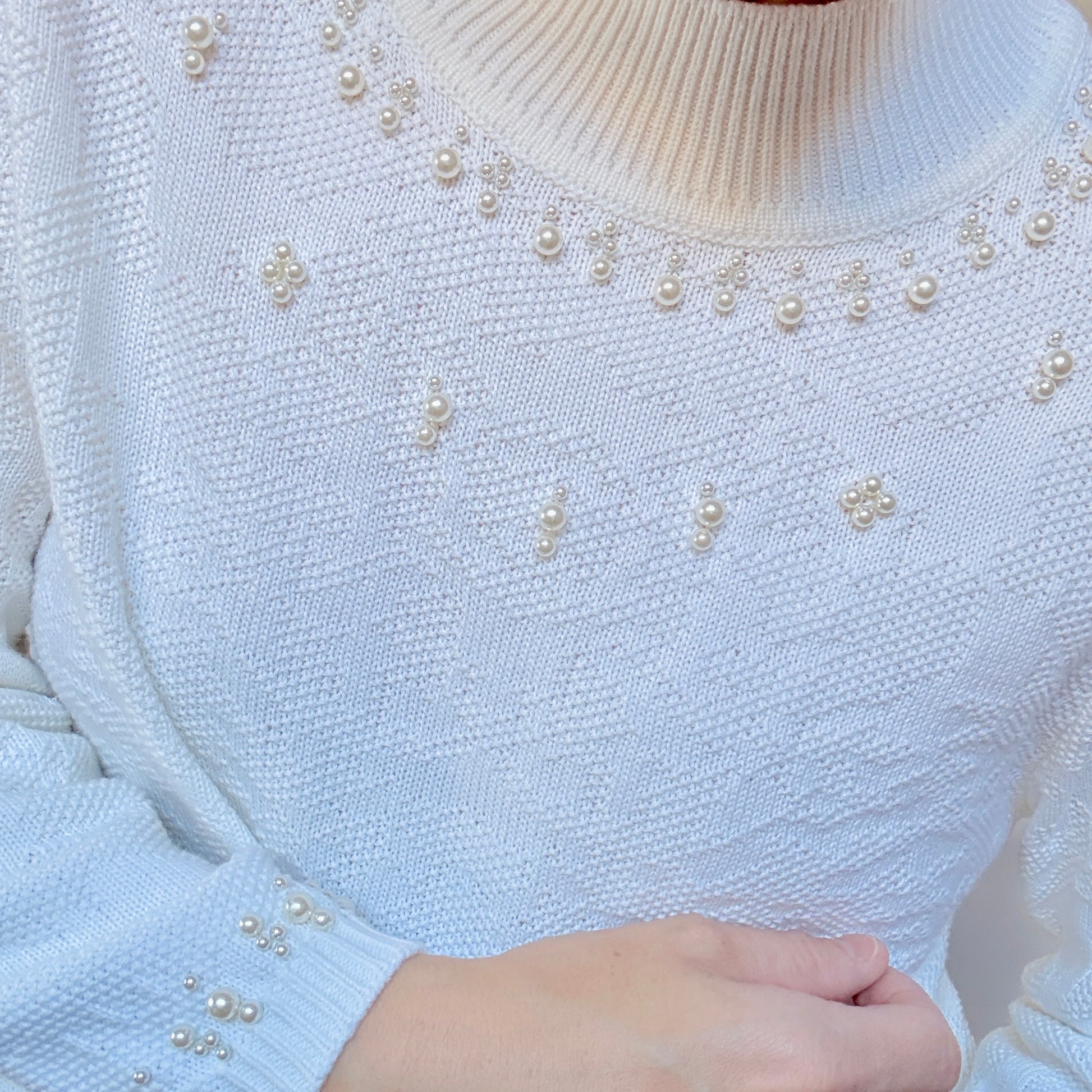 The prettiest of sweaters! We love its pretty pearly flowers.