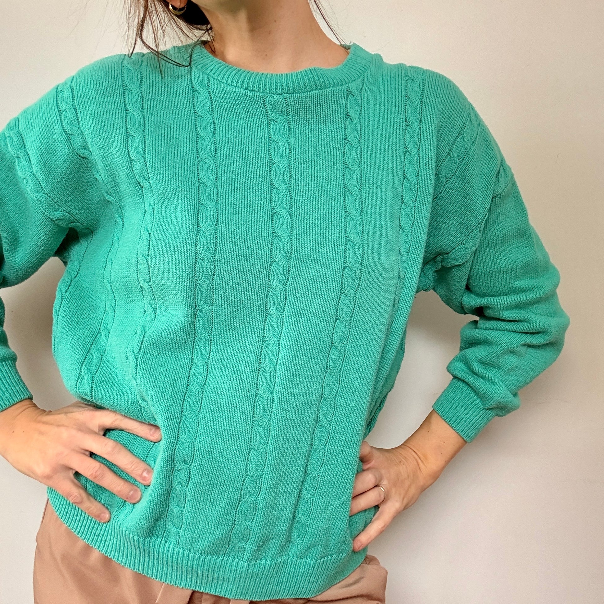Découvrez l'élégance intemporelle de ce tricot turquoise à câble, une pièce vintage authentique fabriquée au Canada. Sa teinte turquoise vif captivante apporte une touche de couleur raffinée à votre garde-robe, tandis que son tricot texturé offre profondeur et caractère. Confectionné avec le savoir-faire canadien, ce vêtement allie qualité durable et style classique. Parfait pour les amateurs de mode vintage qui recherchent une pièce unique et intemporelle.