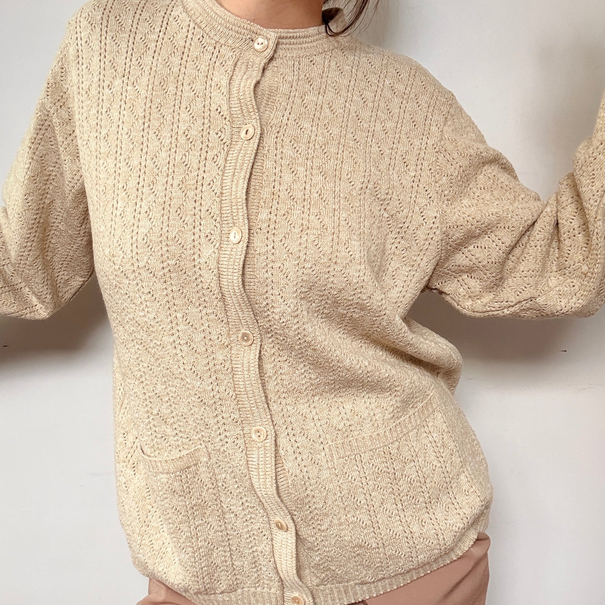 Découvrez l'élégance intemporelle de cette veste avoine aux détails ajourés raffinés. Sa texture délicate et aérée apporte une dimension sophistiquée à votre garde-robe, tandis que sa teinte neutre s'harmonise sans effort avec vos pièces essentielles. Parfaite pour les occasions qui demandent une touche de classe discrète, cette veste incarne le chic classique avec une modernité subtile. Fabriquée au Canada.