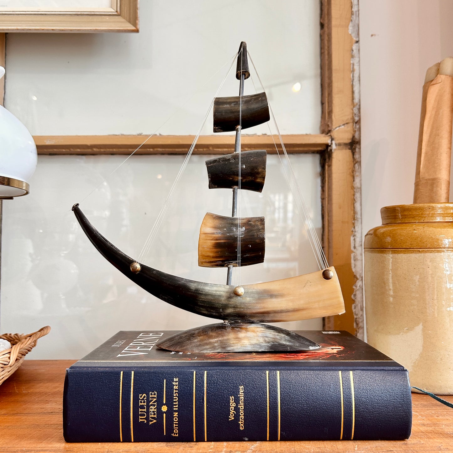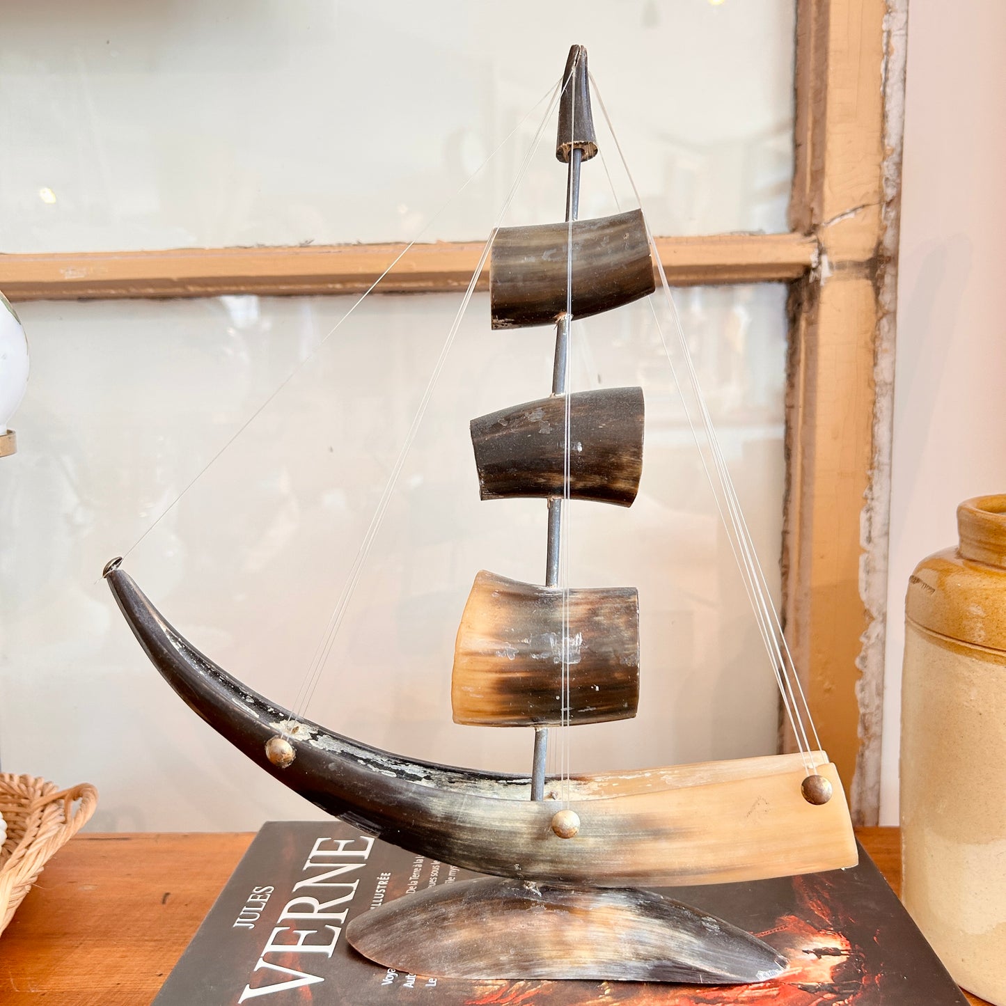 Superbe bateau fait en corne. Un chef d'oeuvre qui apportera beaucoup de charme et de cachet à votre décor.