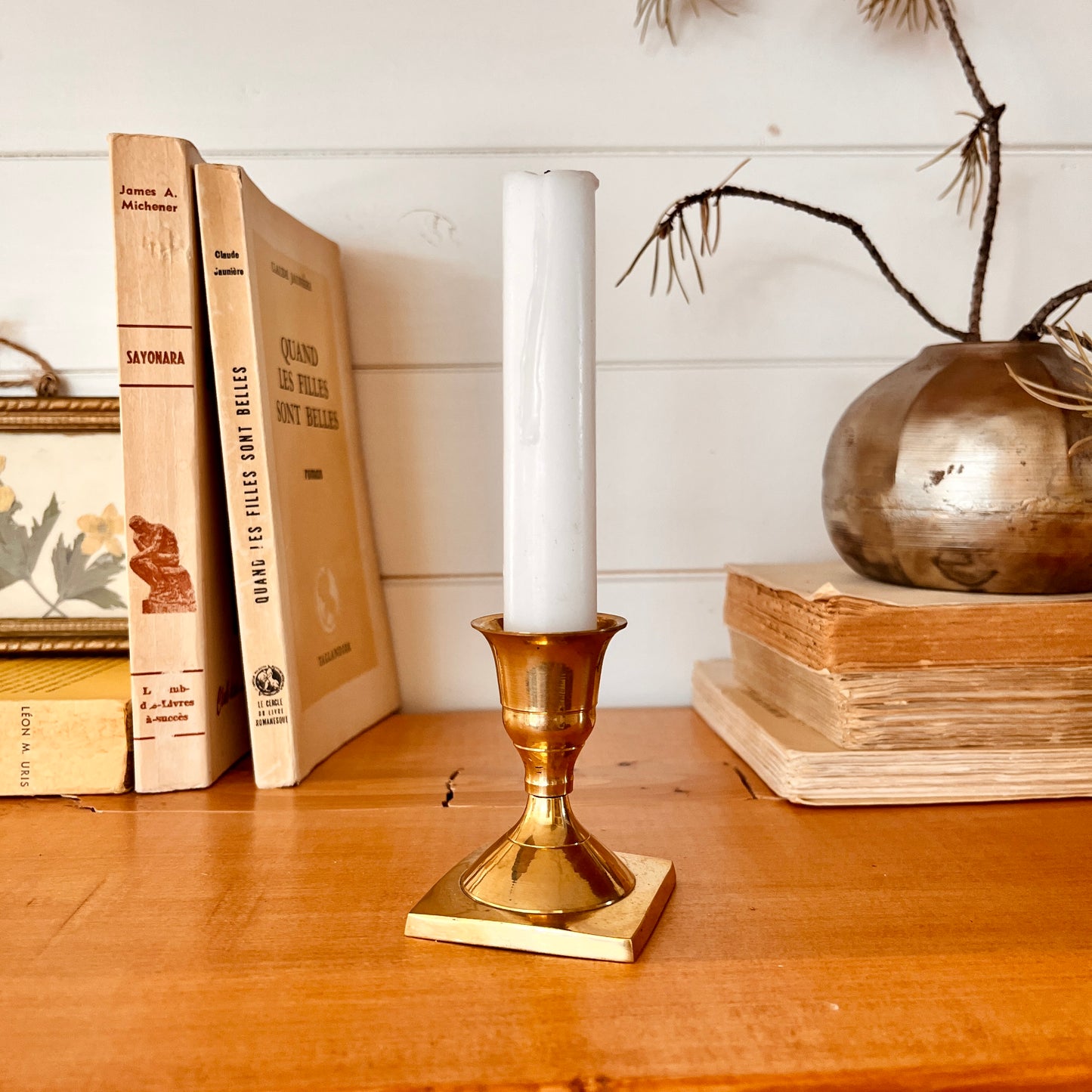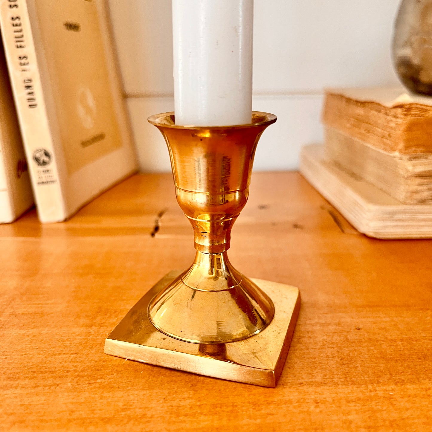 Mignon petit bougeoir vintage. Son petit format est parfait pour créer une composition de bougeoir ou pour mettre en valeur sur une tablette.