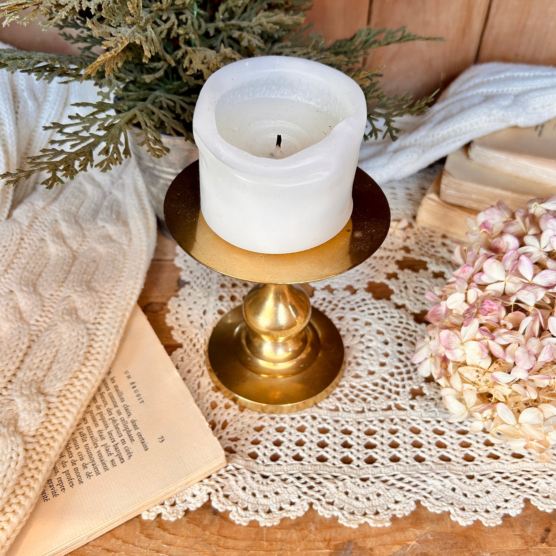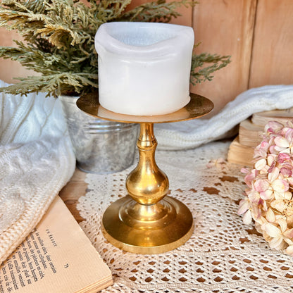 Donnez un air élégant et vintage à votre maison avec ce magnifique bougeoir en laiton. Fabriqué en laiton massif, il est parfait pour les chandelles pilier et apporte une touche de brillance à votre décoration. Un must-have pour les amateurs de design classique.