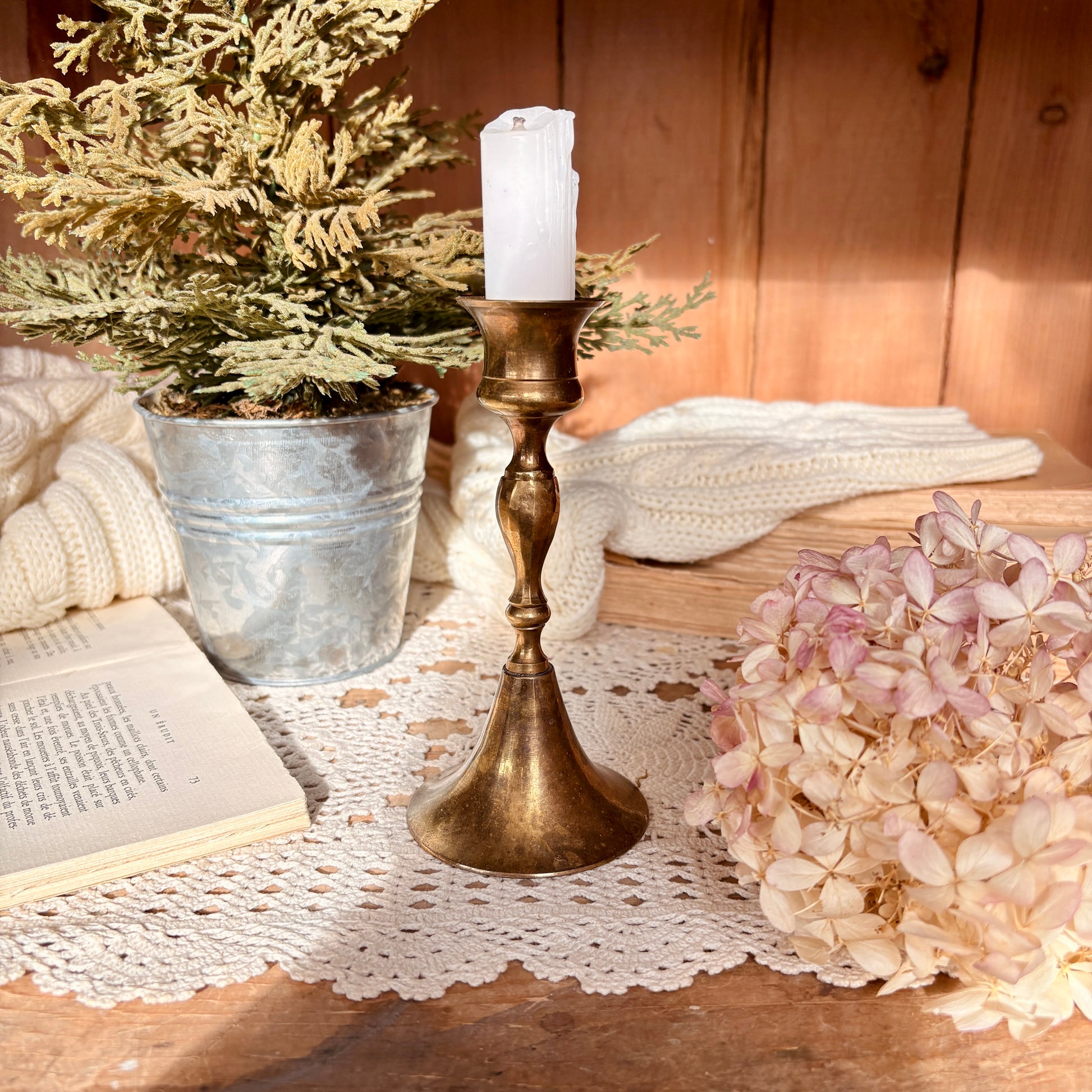 Illuminez vos espaces avec l'élégance intemporelle de ce bougeoir en laiton. Son fini doré chaleureux crée une ambiance raffinée et accueillante, idéal pour les moments festifs et les soirées intimes. Cette pièce de décoration ajoute une touche de sophistication à votre table ou votre foyer. Le laiton, matériau noble et durable, garantit une beauté qui perdure au fil des années.