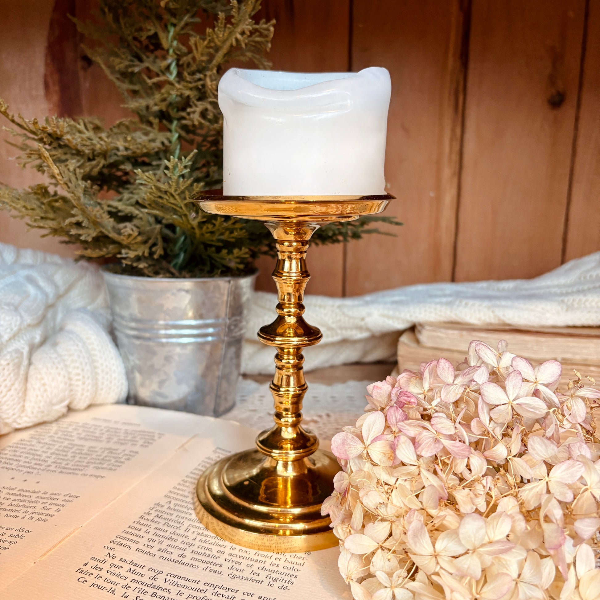 Donnez un air élégant et vintage à votre maison avec ce magnifique bougeoir doré. Il est parfait pour les chandelles pilier et apporte une touche de brillance à votre décoration. Un must-have pour les amateurs de design classique.