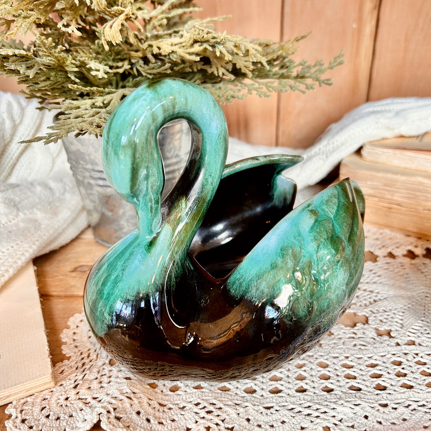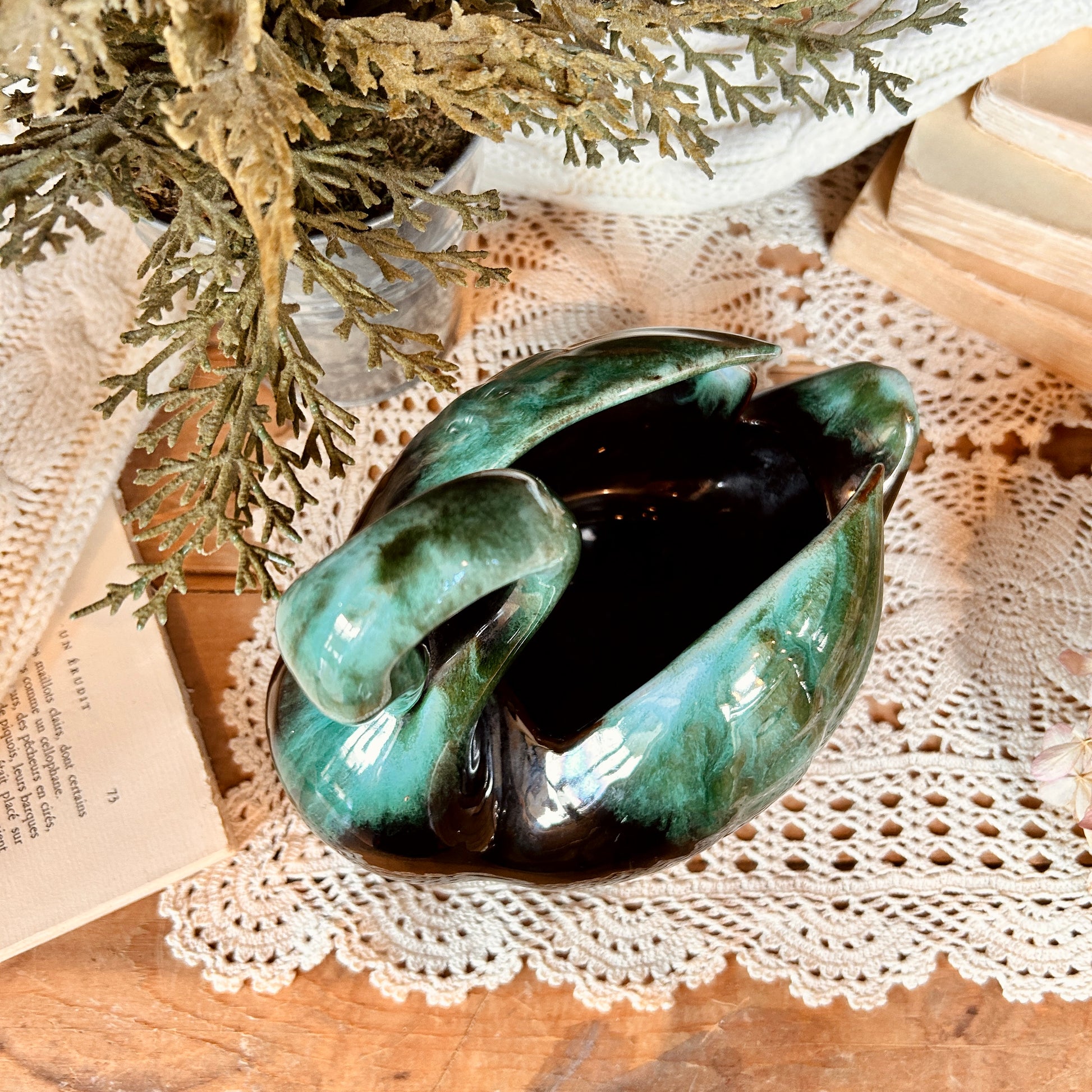 Découvrez ce cache-pot en forme de cygne, une pièce élégante fabriquée en Ontario par Blue Mountain Pottery. Sa teinte émeraude profonde apporte une touche raffinée et unique à votre décoration intérieure, sublimant vos plantes avec grâce et style. Un choix sophistiqué pour les amateurs d’artisanat canadien.