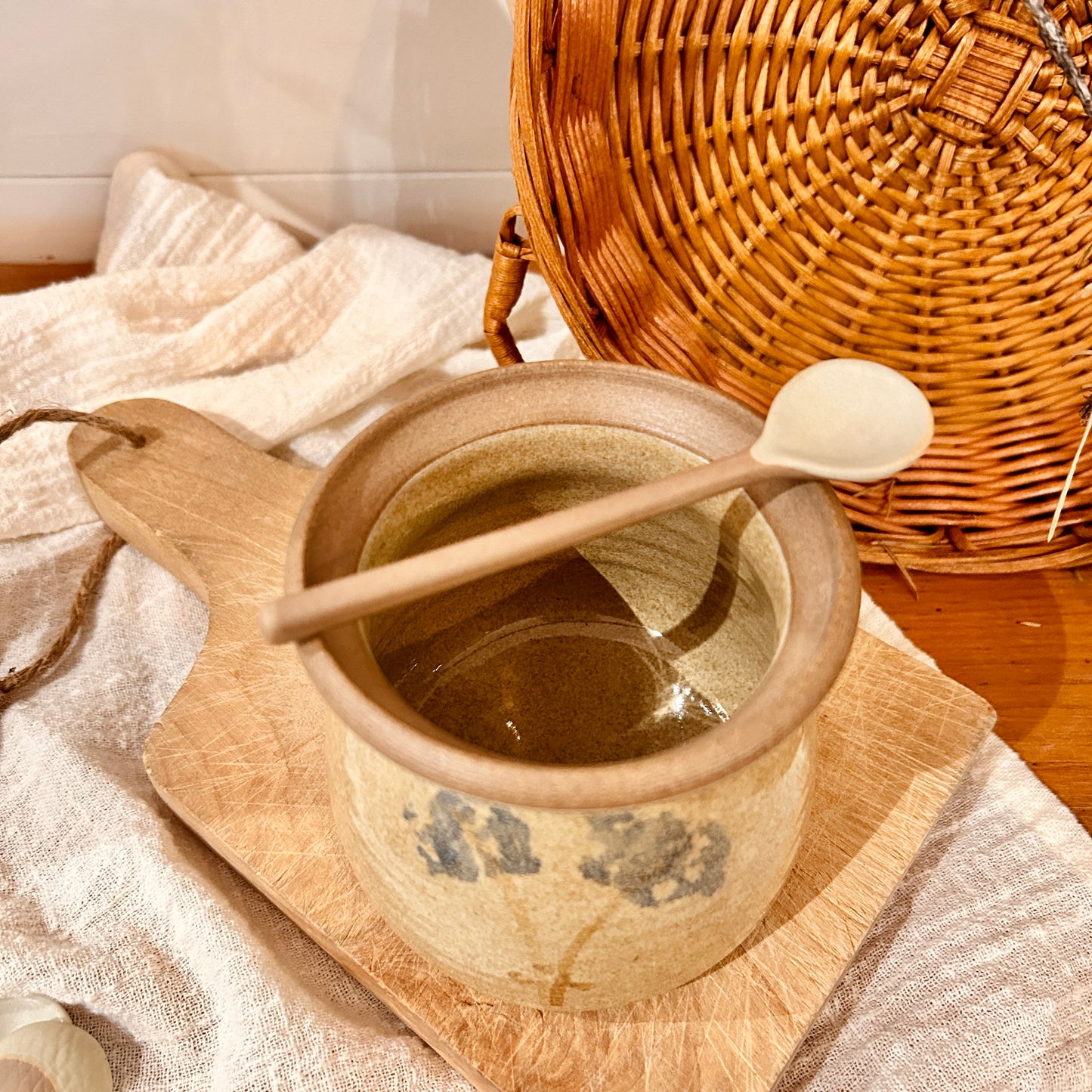 Mignonne petite cuillère en grès bicolore. Un parfait complément pour vos pots à condiments ou encore pour brasser vos boissons chaudes.