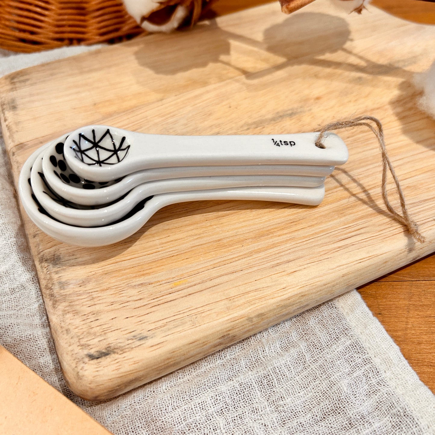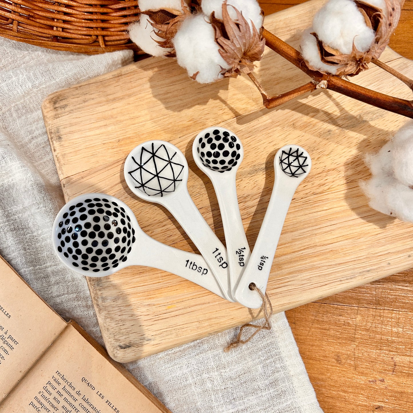 Ajoutez de l'élégance à votre cuisine tout en cuisinant avec grâce grâce à cet ensemble de cuillères à mesurer en céramique au design chic et classique. Sa corde de jute est idéal pour un rangement facile permettant de les suspendre. Parfait pour un cuisinier passionné !