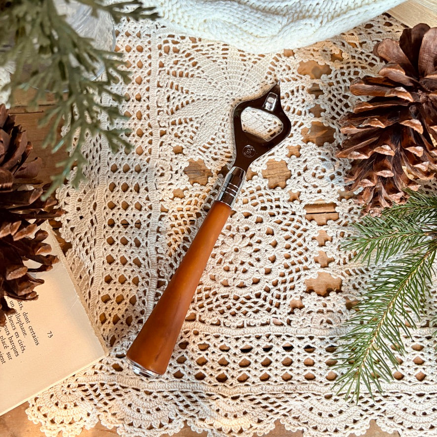 Décapsuleur vintage en acier inoxydable doté d'un manche en bakélite, témoignage authentique du savoir-faire canadien des années 1960. Cet outil intemporel allie robustesse et élégance rétro, parfait pour les collectionneurs de pièces historiques ou les amateurs de design d'époque. Sa construction durable garantit une utilisation fiable pour décapsuler vos bouteilles avec style et nostalgie.
