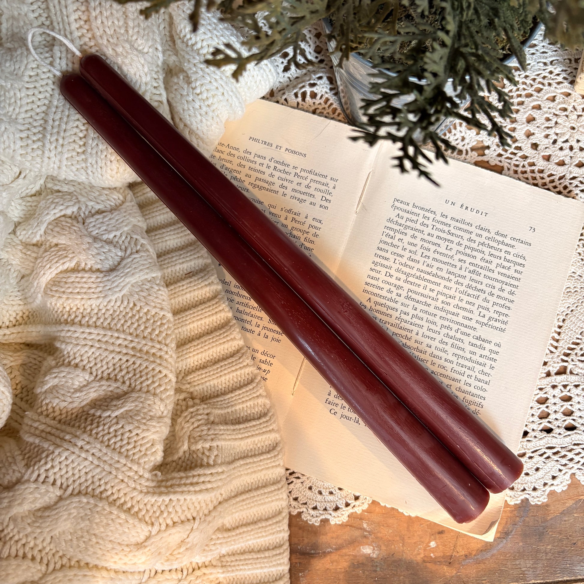 Ensemble de deux bougies de 12 pouces de couleur chocolat. Simple et pure, la bougie conique en cire d'abeille 100 % naturelle de Honey Candles® est un incontournable de la table du dîner et un merveilleux ajout à toute occasion romantique.