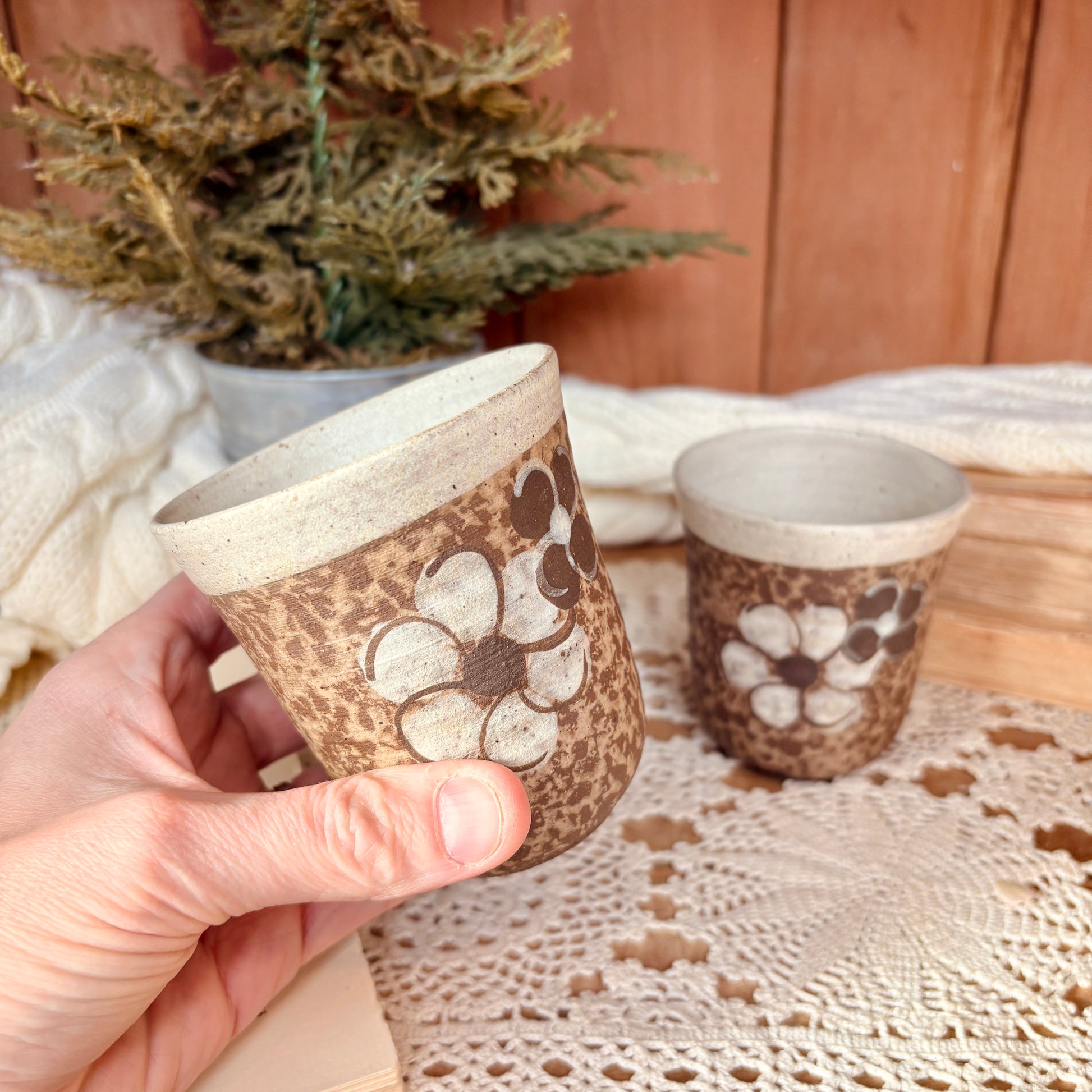 Découvrez ce parfait gobelet en grès, fait à la main. Parfait pour savourer votre thé ou espresso préféré dans un style artisanal et élégant. Une pièce unique qui apportera une touche de sophistication à votre routine quotidienne. Profitez de chaque gorgée dans ce gobelet parfaitement conçu.