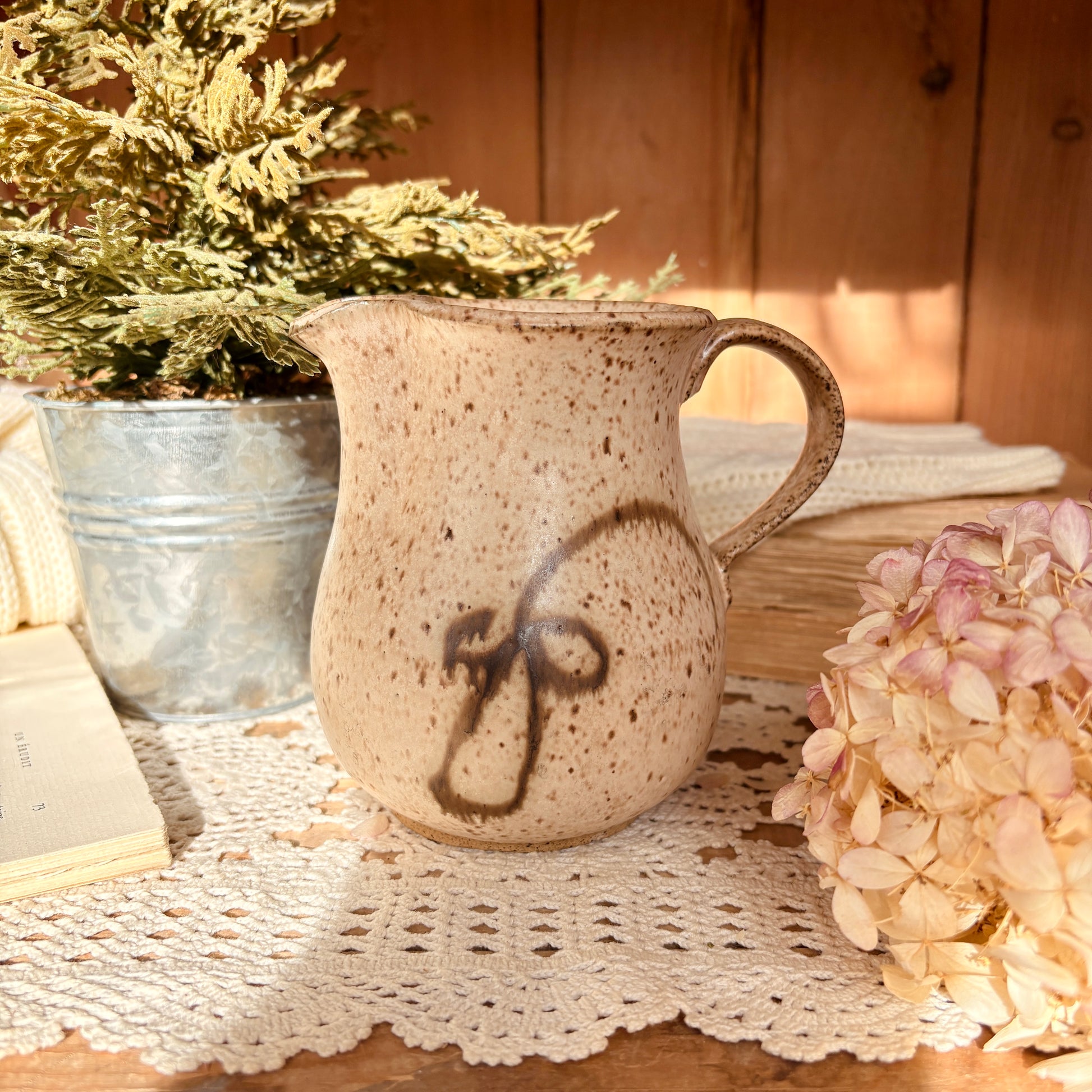 Petit pichet en grès artisanal aux lignes épurées et intemporelles. Polyvalent et élégant, il se prête à mille usages : verseur pour vos sauces maison, pot à lait pour la table, ou délicat vase pour quelques fleurs fraîches. Chaque pièce porte la signature de son créateur, avec ses légères variations qui témoignent de son caractère fait main. Un objet de charme qui ajoute une touche d'authenticité à votre quotidien.