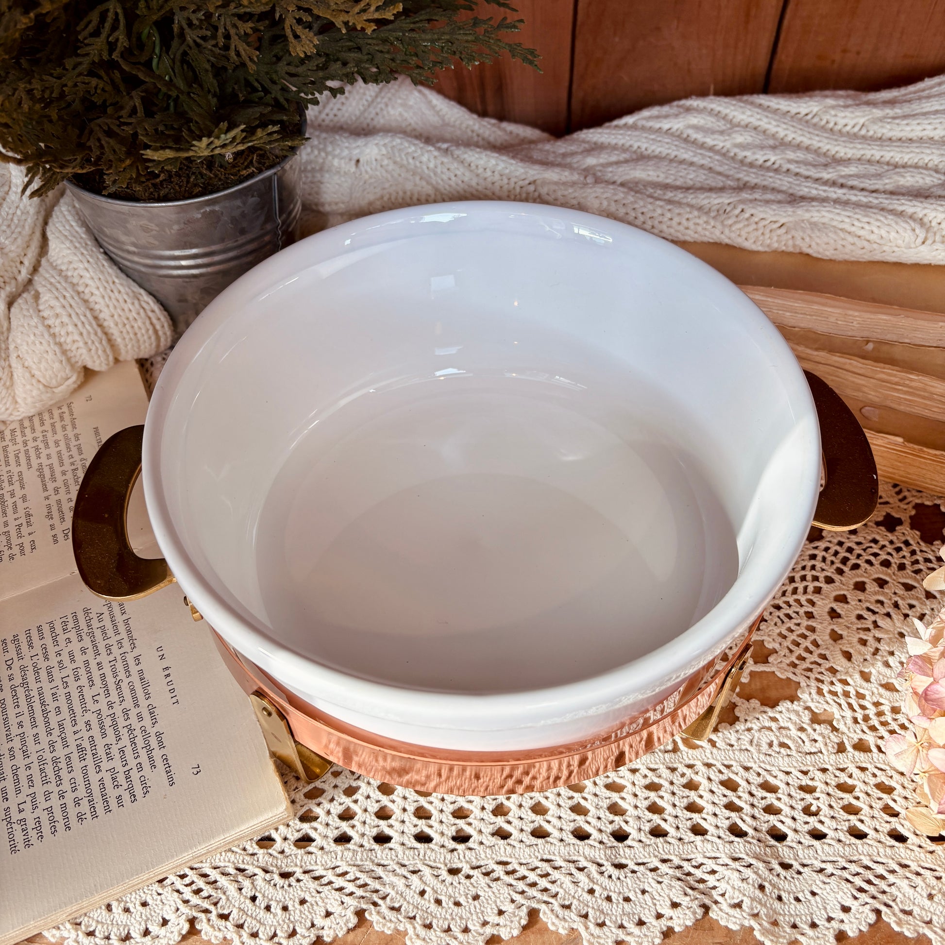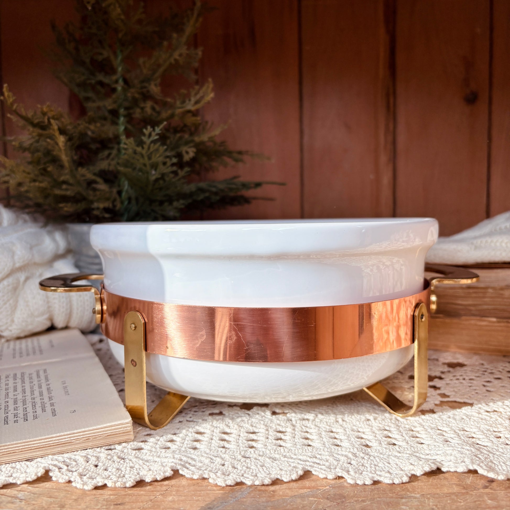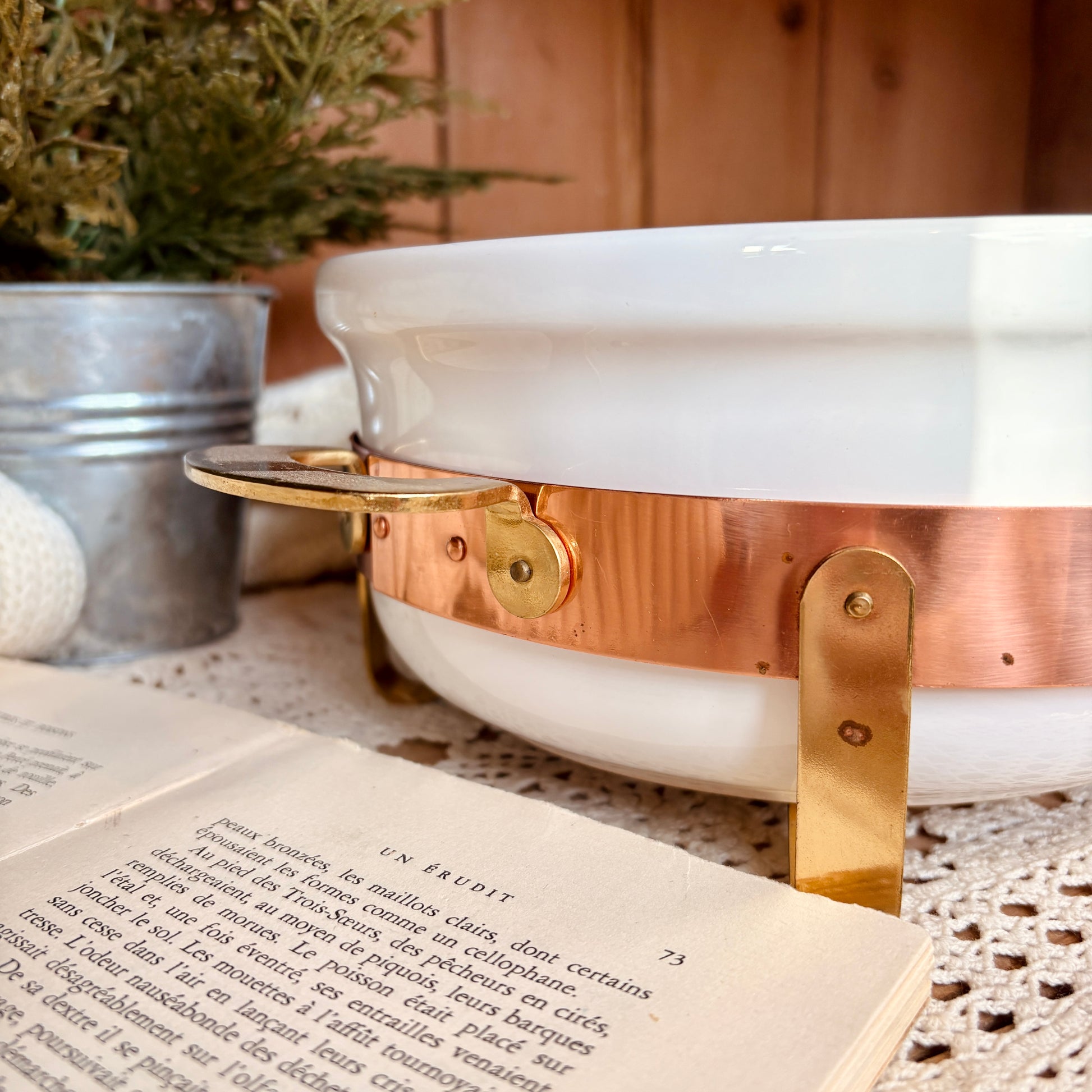 Plat de service en céramique aux lignes épurées, rehaussé d'une monture en cuivre et laiton aux finitions patinées. Cette pièce vintage allie l'élégance intemporelle de la céramique à la chaleur des métaux nobles, créant un accessoire de table à la fois fonctionnel et décoratif. Parfait pour présenter vos mets avec raffinement ou pour enrichir une collection d'objets d'art de table. Un détail de caractère qui transforme chaque service en moment d'exception. Fabriqué au Portugal.